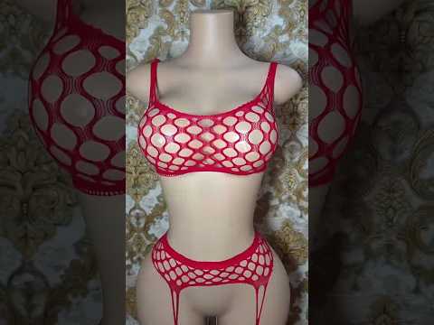 Red Fishnet Lingerie – Mesh Bra Set with Arm Sleeves & Thigh-High Stockings | Exclusive Inner House
